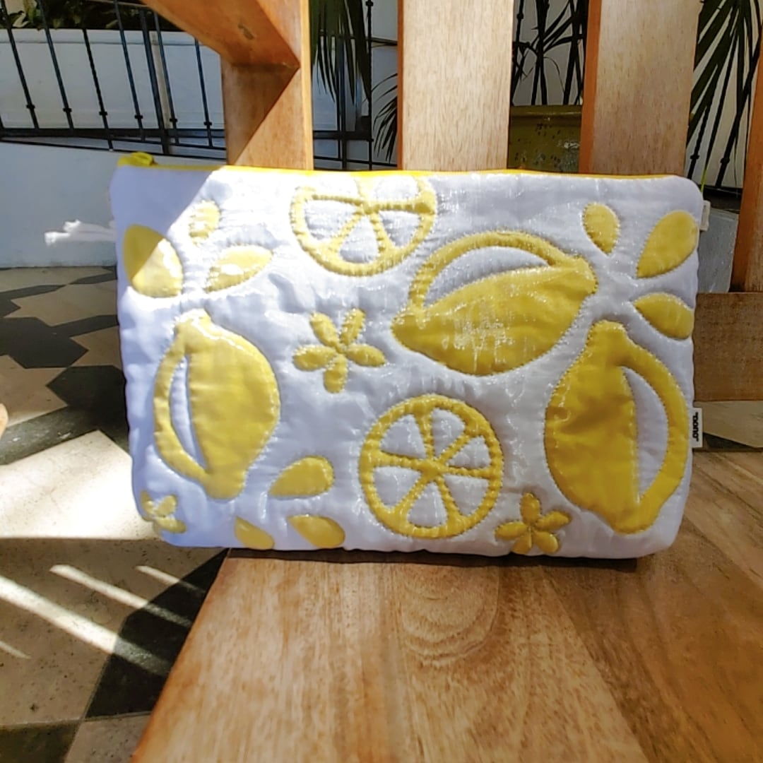 このポーチを持ち歩くと、レモンが散らばったデザインが日常にレモン効果パワーアップ!